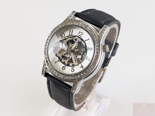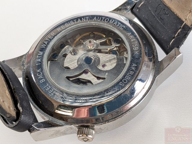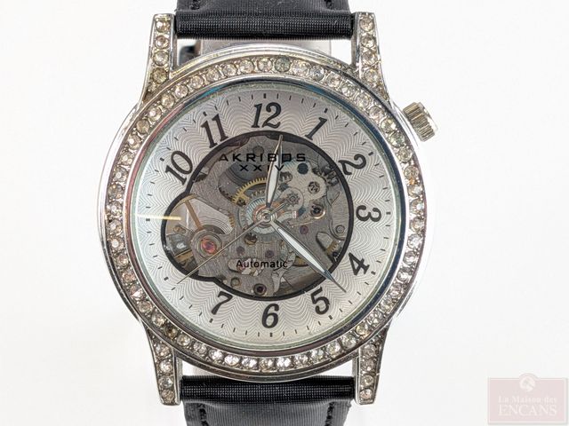 Montre Akribos XXIV avec boitier en acier inoxydable, référence AK475BK, mouvement automatique mesurant 38.2 millimètres avec sa couronne, fonctionnelle