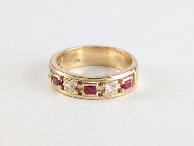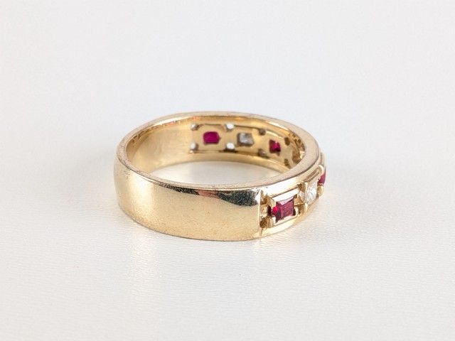 Lot # 102 - Bague en or 10k serties de diamants et de rubis, taille 10