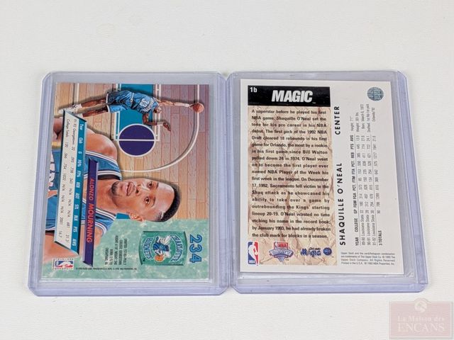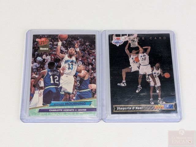 Deux cartes de basketball rookies Shaquille O'Neal Upper Deck et Alonzo Mourning