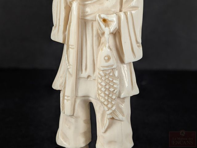 Lot # 187 - Sculpture orientale sur ivoire, circa 1950, représentant un pêcheur et mesurant 4 pouces de hauteur SOLD
