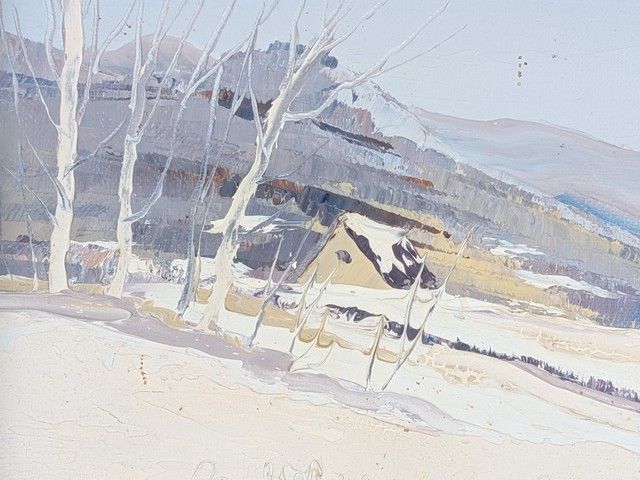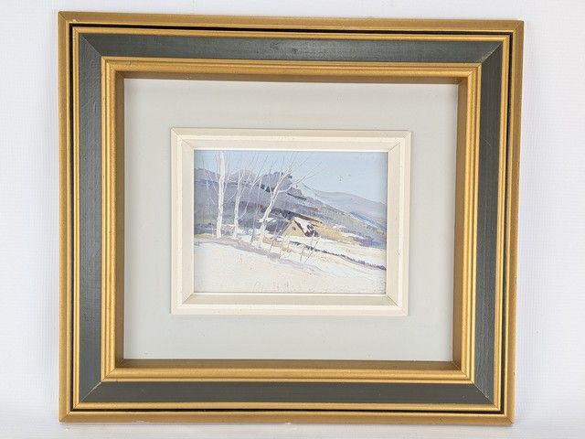 Huile sur panneau signée, représentant un matin d'hiver et mesurant 6x8 pouces