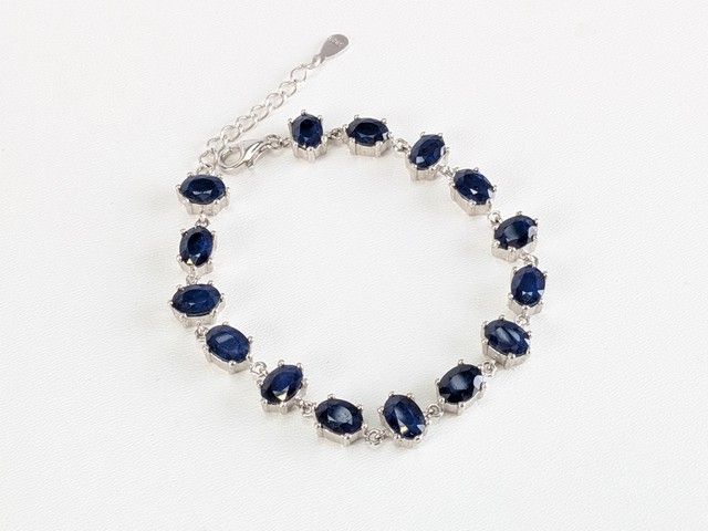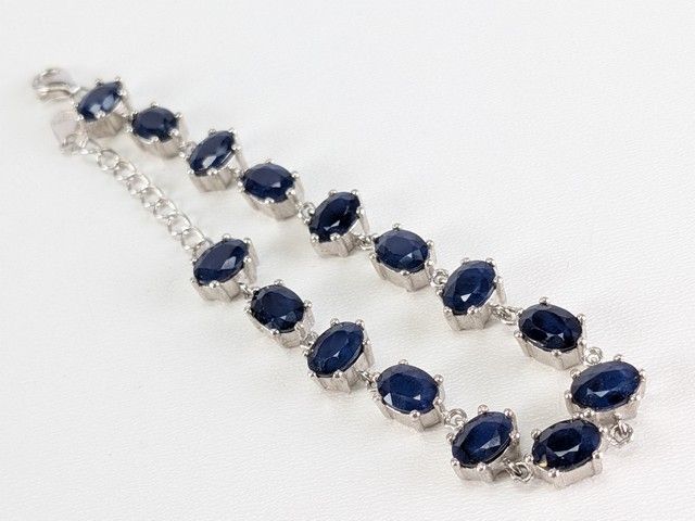 Lot # 65 - Bracelet en argent serti de saphirs, mesurant 6 pouces de longueur