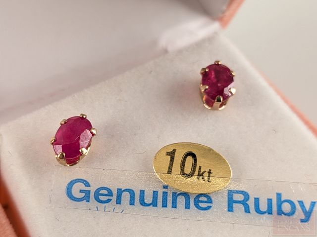 Lot # 218 - Paire de boucles d'oreilles en or 10k serties de rubis SOLD