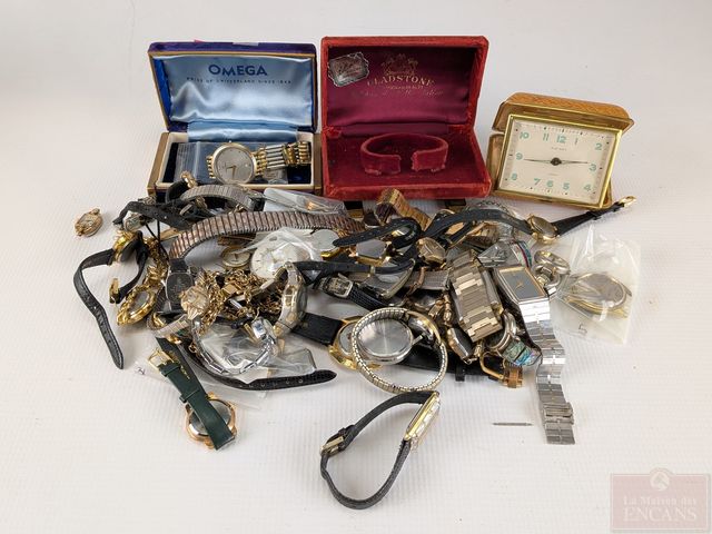 Gros lot de montres et de mouvements de montre variés, dont Michel Herbelin, Longines, Marathon, Omega et autres