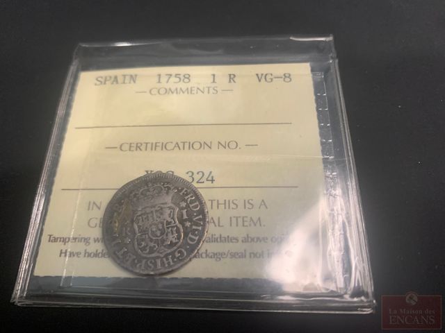 Lot # 171 - Pièce de 1 REAL d'Espagne de 1759 certifié