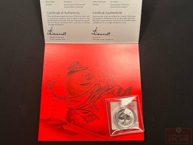 Lot # 57 - Pièce de $20 2014 en Argent pur ‘Bonhomme de neige’ PAS DE TAXE