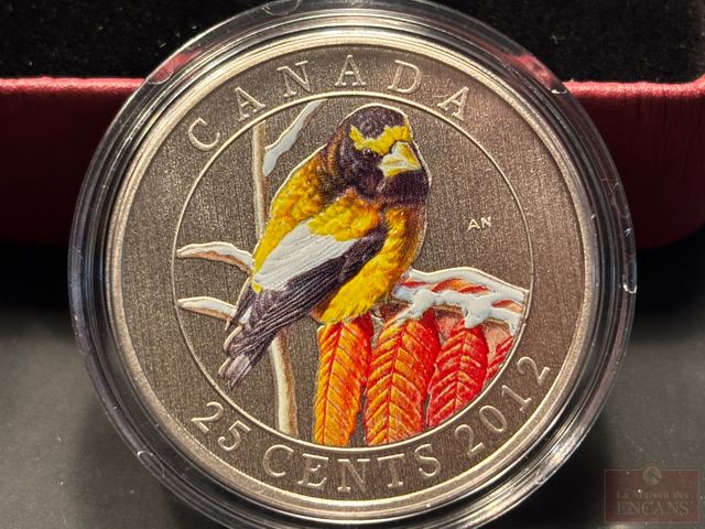 Lot # 28 - Pièce de 25 cents colorée 2012 ‘'Le gros-bec errant''