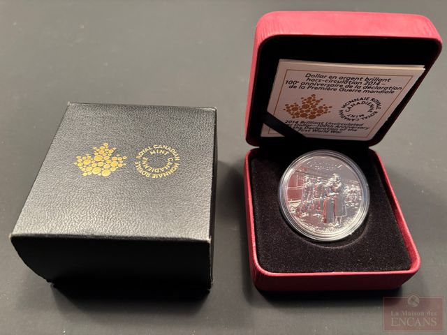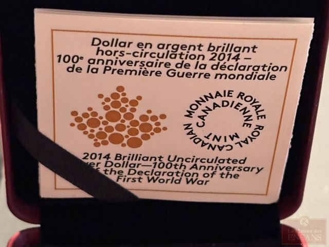 Lot # 164 - Dollar en Argent Hors-circulation 2014 ‘100e ann. de la déclaration de la 1er guerre mondiale’ en Argent pur PAS DE TAXE