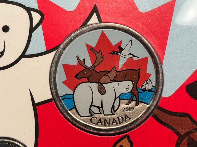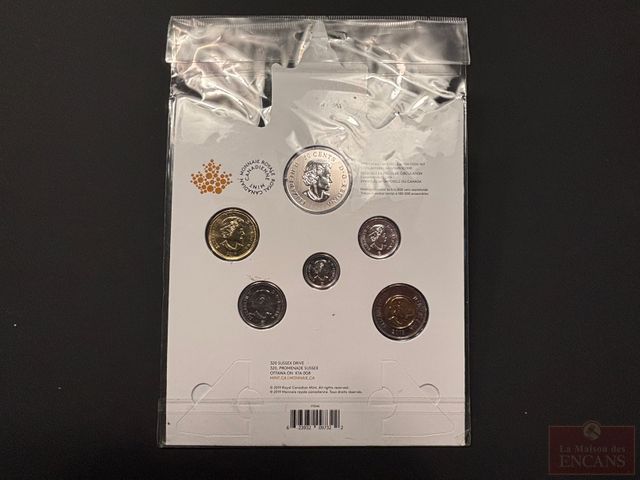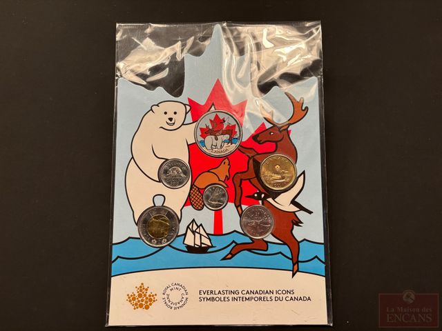 Lot # 163 - Ensemble de Pièces 2019 5¢ - 10¢ - 25¢ - 50¢ colorées et $1 - $2 symboles intemporels du Canada (scellé)