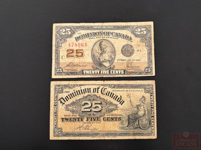 Billet de 25 cents 1900 et billet de 25 cents 1923