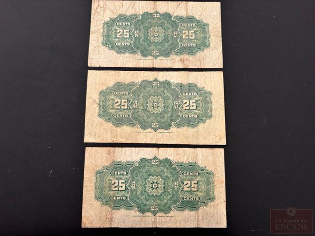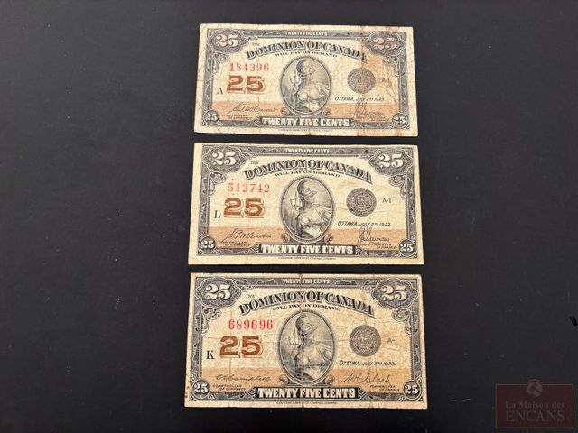 Lot # 103 - 3 Billets de 25 Cents 1923 du Dominion