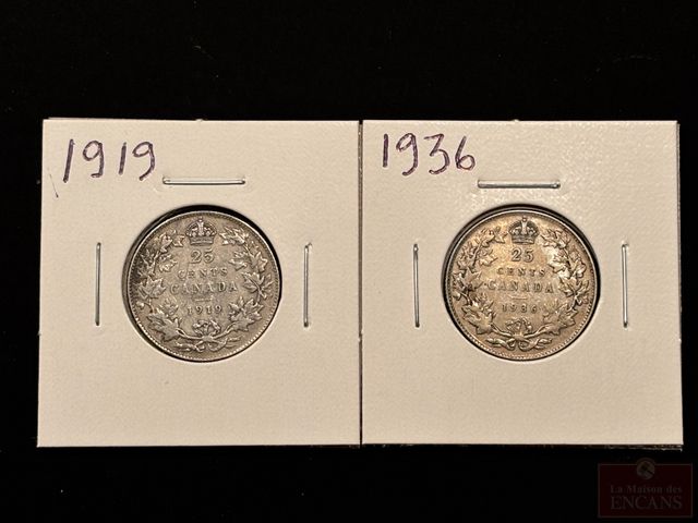 Lot # 121 - 2 Pièces de 25 Cents 1919 et 1936 en Argent