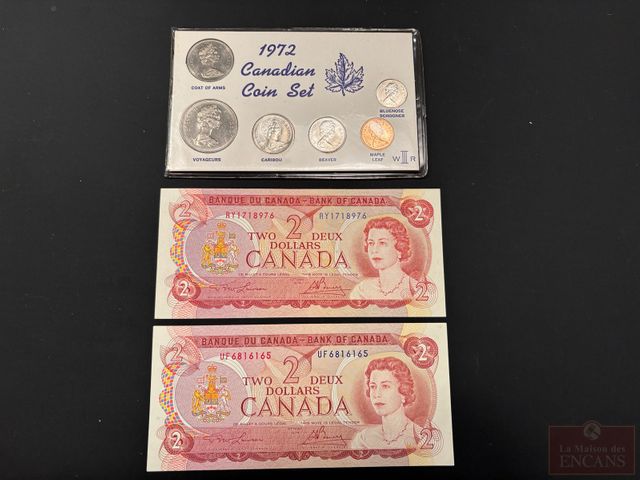 Lot # 106 - 2 Billets de $2 1974 UNC (incirculés) + Ensemble 1972 spécial MINT