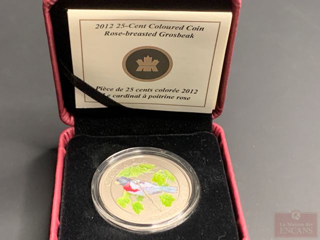 Lot # 328 - pièce de 25 cents colorée le Cardinal à poitrine rose