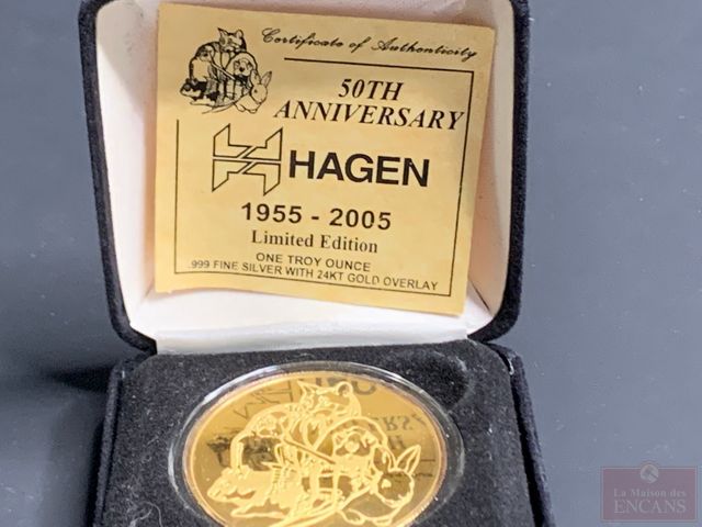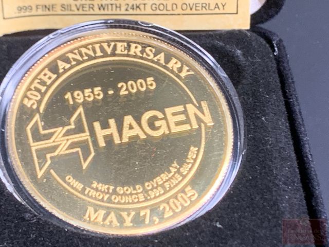 Rare 1 once d'argent pur plaquée or, pour souligner les 50 ans de Hagen, sans taxes