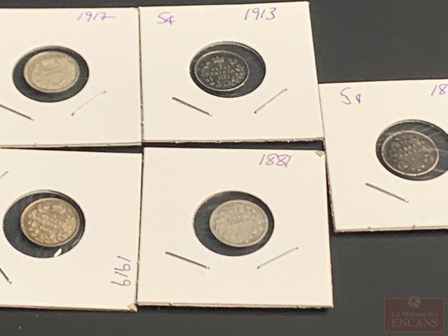 Lot # 306 - 5 petits 5 cents 1880, 1881, 1913, 1917, 1919