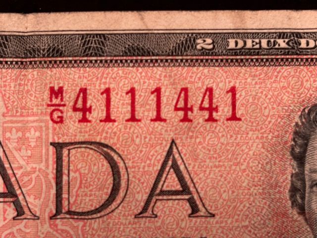 Lot # 42 - Billet de $2 1954 (numéro de série des 4 et 1)