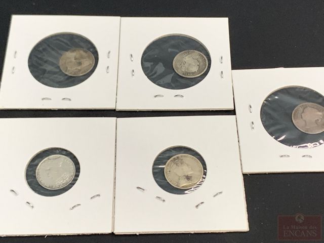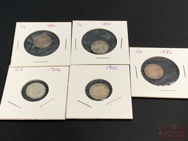 5 pièces de 5 cents 1870, 1880, 1881, 1906, 19105