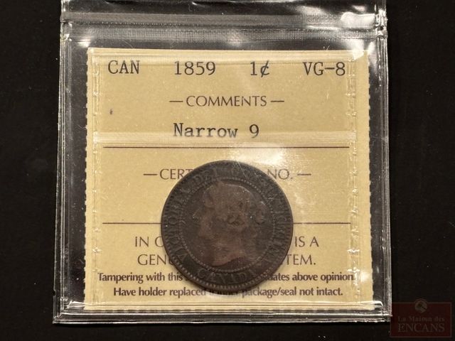 Lot # 48 - Pièce de 1 cent 1859 certifiée ICCS VG8