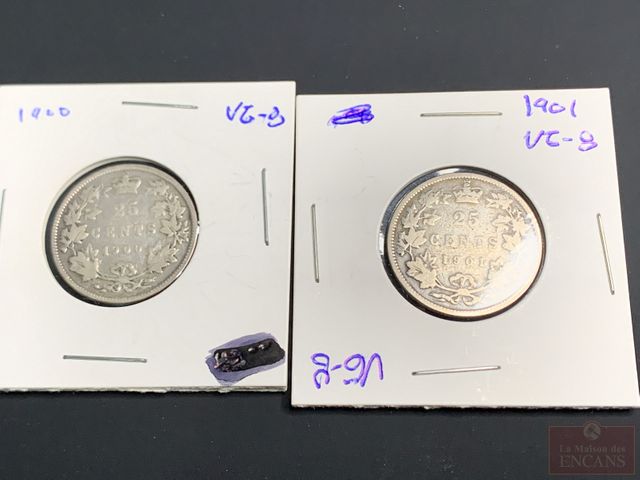 Lot # 276 - 2 pièces de 25 cents 1900 et 1901