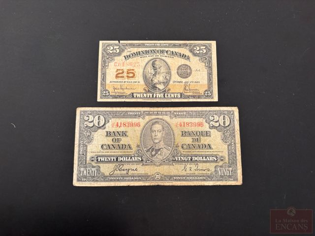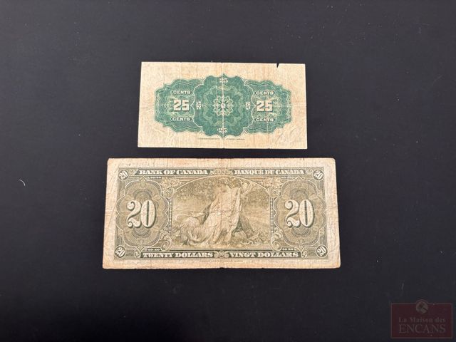 Lot # 86 - 2 Billets : ( 1 X 25 Cents 1923) + (1 X $20 1937)