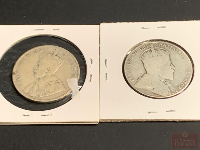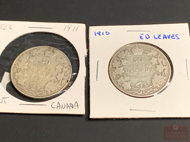 Deux pièces de 50 cents , un 1910 feuilles Edouardienne et un de 1911