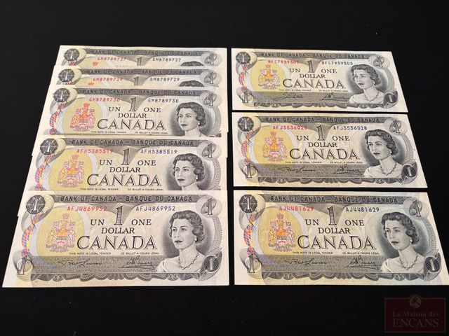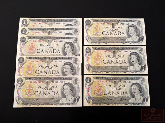 Lot # 105 - Lot de 8 Billets de $1 1973 dont 7 incirculés et 1 AU