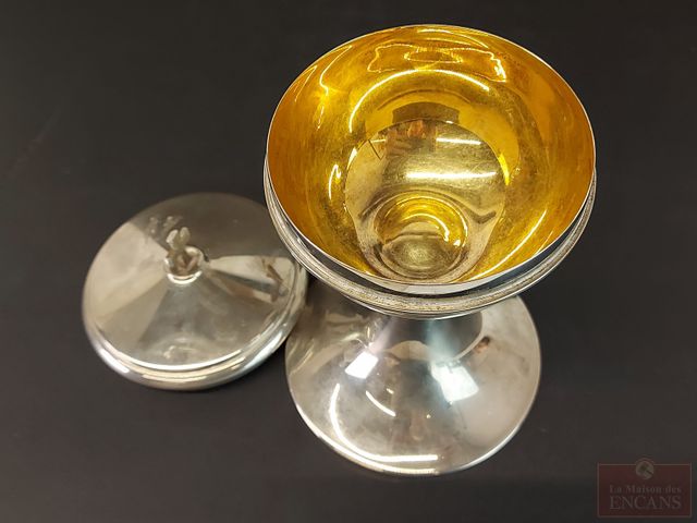 Lot # 214 - Calice avec sa coupe en argent sterling, fait par A. Guyot, Montréal et mesurant 8 pouces de hauteur VENDU