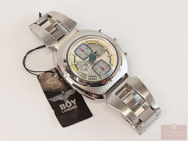 Lot # 63 - Montre Boy London design par Stéphane Raynor, mesurant 41 millimètres avec sa couronne, dans son coffret (besoin d'une nouvelle batterie) VENDU