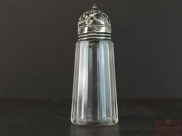 Lot # 70 - Sucrière anglaise en argent sterling et cristal, datant de la fin du 19eme/début du 20eme siècle et mesurant 5.75 pouces de hauteur VENDU