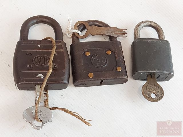 Lot # 72 - Lot d'anciens cadenas et clefs, certains cadenas avec leurs clés, l'un des cadenas provenant du Canadian National Railway et mesurant 3.5 pouces de hauteur SOLD