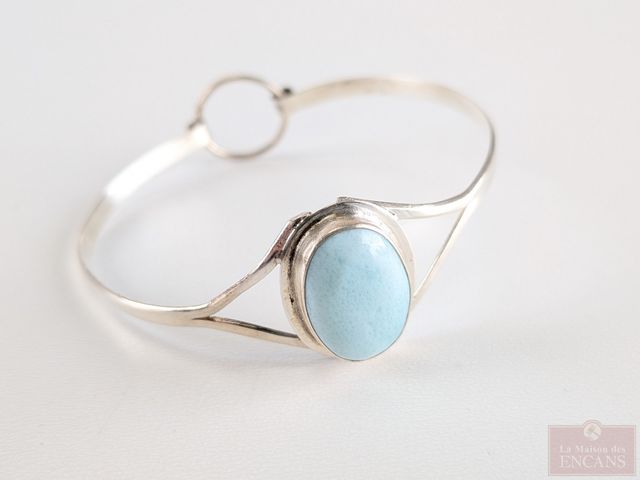 Lot # 183 - Bracelet en argent serti d'une larimar, mesurant 2.5 pouces de largeur SOLD