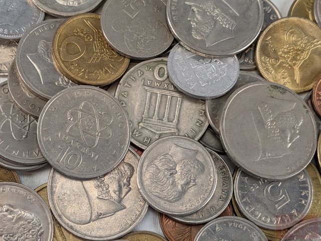 Lot numismatique comprenant billet turc de cinq-mille lires, billet turc de mille lires, pièces de monnaie turques, grecques et autres