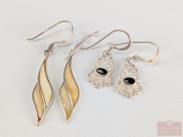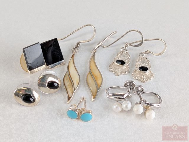 Lot # 204 - Lot de paires de boucles d'oreilles en argent, la plus grande mesurant 1.75 pouces de hauteur SOLD