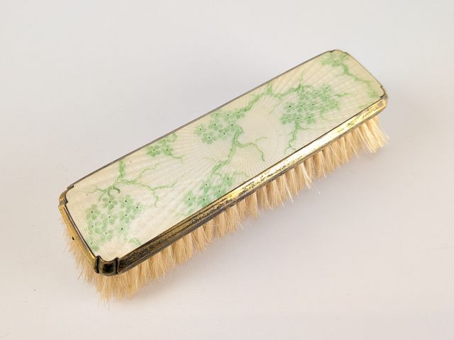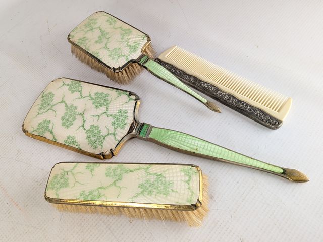 Lot # 24 - Ancien ensemble de beauté en laiton guilloché, circa 1900, comprenant peigne, brosse et miroir mesurant 14 pouces VENDU