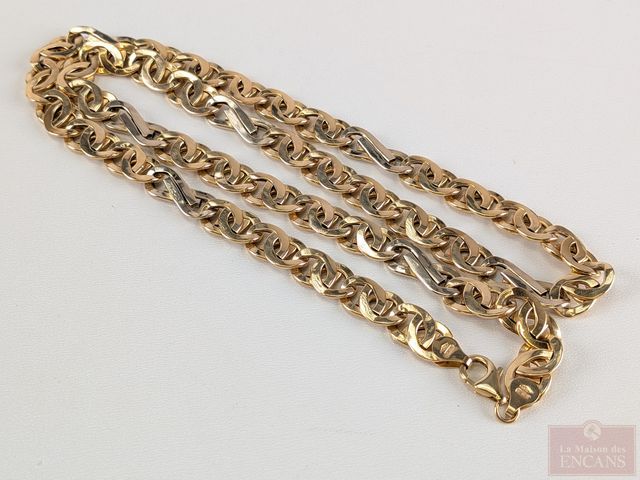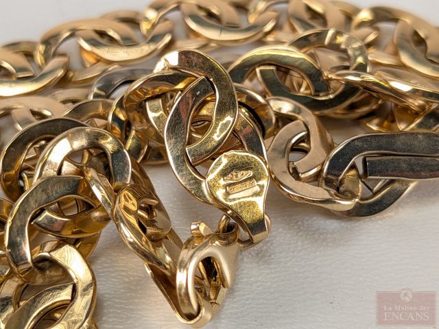 Lot # 206 - Chaine en or 18k mesurant 24 pouces de longueur, mailles mesurant 9 millimètres VENDU