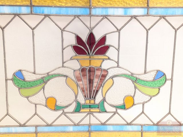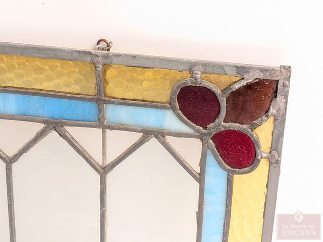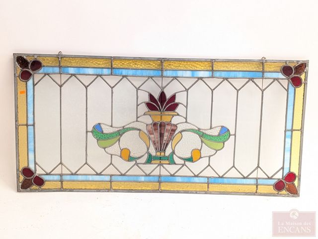Vitrail à vitre plombée, datant des années 1930-1940 et mesurant 21.5x44.5 pouces