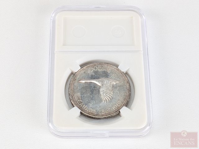 Lot # 74 - Pièce canadienne d'un dollar 1967 en argent, encapsulée