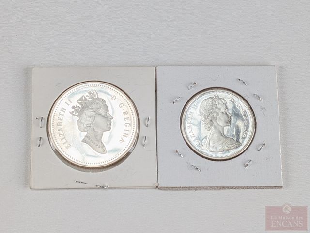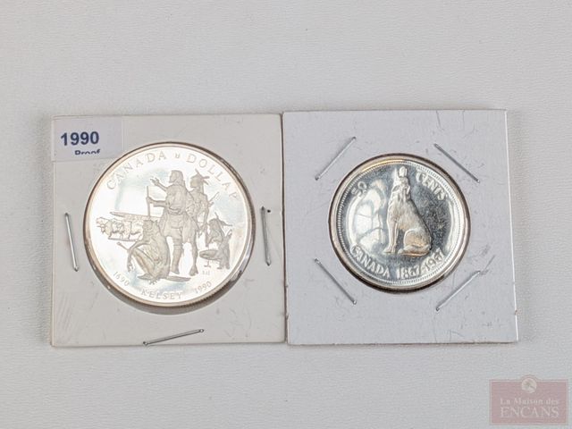 Lot # 191 - Deux pièces canadiennes en argent, comprenant pièce de cinquante sous 1967 et dollar Kelsey 1990