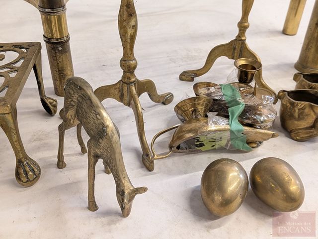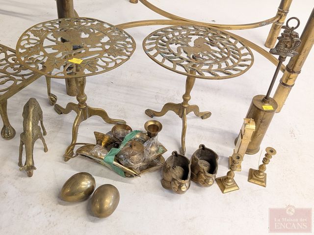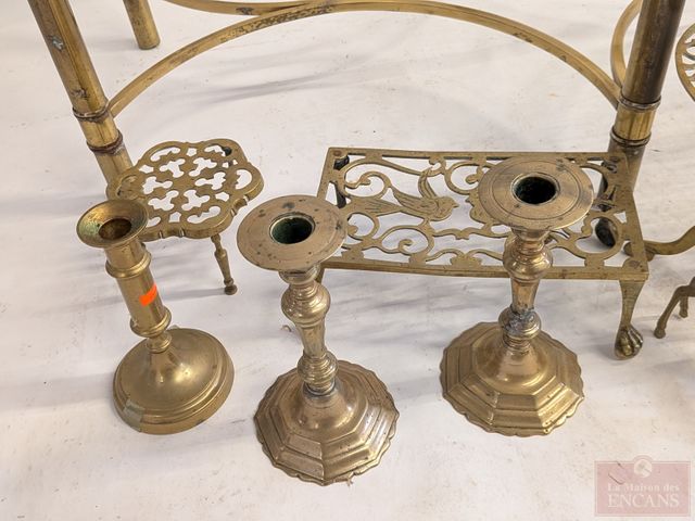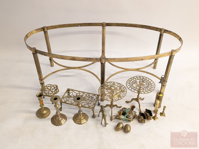Lot # 240 - Gros lot de laiton, dont base de table mesurant 48 pouces