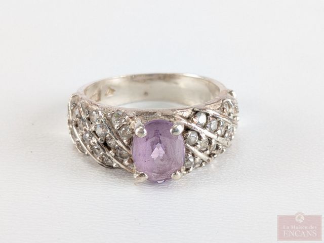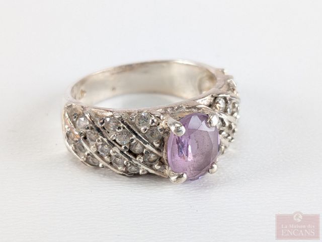 Lot # 186 - Bague en argent sterling sertie de multiples pierres, dont améthyste, taille 7