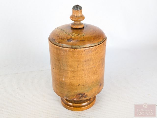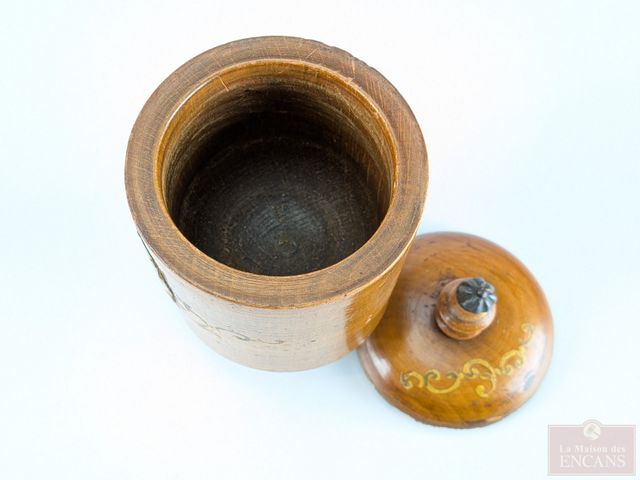 Lot # 31 - Contenant à tabac à priser en bois, datant du début du 20eme siècle et mesurant 6 pouces de hauteur