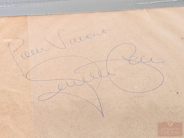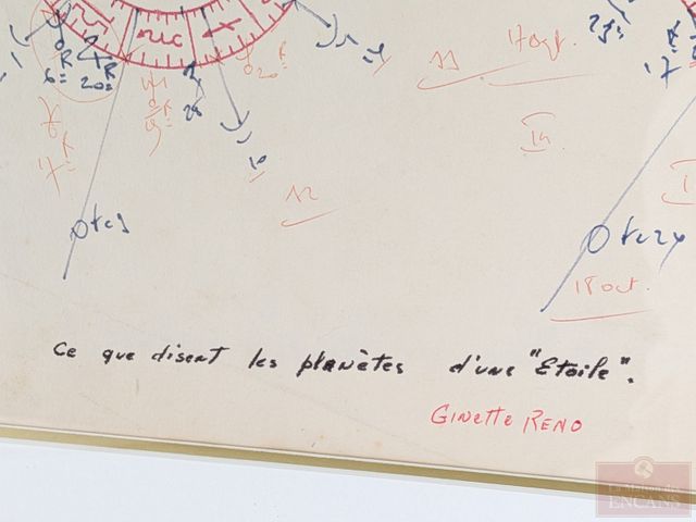Lot # 152 - Carte du ciel de Ginette Renaud avec signature à l'endos, mesurant 10x13.5 pouces, achetée directement à la vente de garage de Ginette Renaud, samedi le 7 septembre 1991