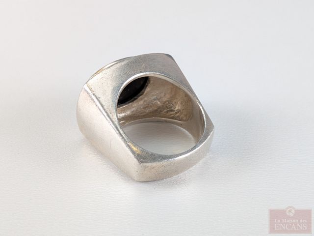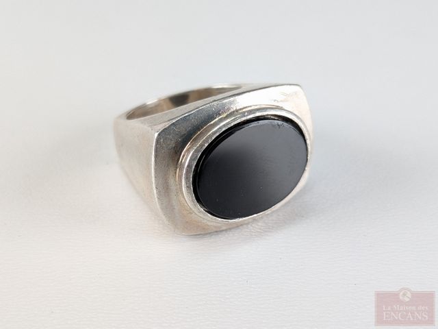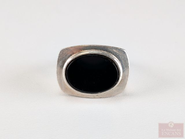 Lot # 232 - RYLA- Bague moderniste en argent sterling sertie d'une onyx, signée, taille 7
