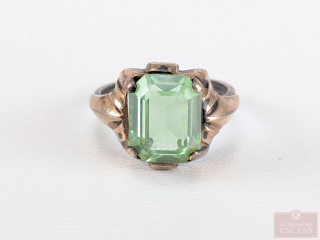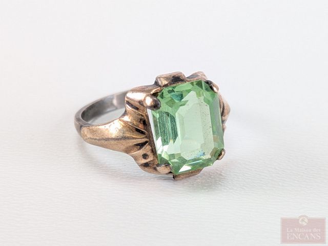 Lot # 64 - Bague art-déco en argent et or 10k, datant des années 1930, taille 4.75
