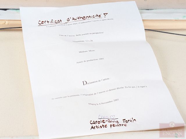 Lot # 124 - Carole-Anne FORTIN - Huile sur toile signée, datant de 2005, mesurant 12x24 pouces avec certificat et titrée Belle journée en perspective