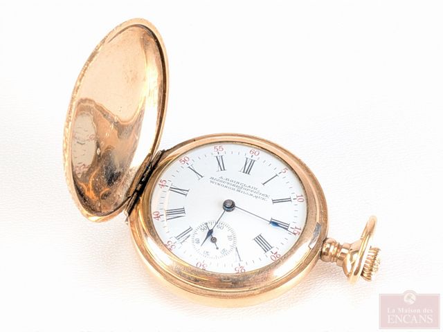 Montre de poche A. Boisclair, bijoutier et opticien Windsor Hills, Québec, mouvement mécanique à remontage manuel, datant du début du 20eme siècle et mesurant 2 pouces, fonctionnelle