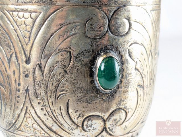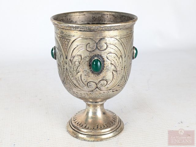 Coupe à vin en argent à motifs d'arabesques, mesurant 5 pouces de hauteur