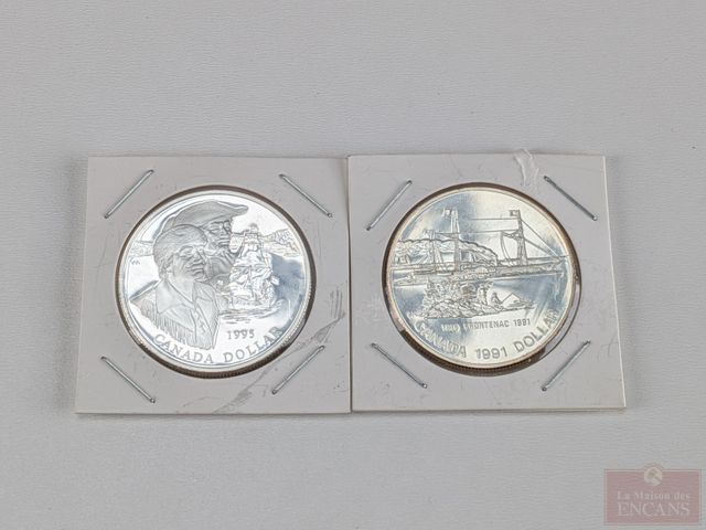 Deux pièces canadiennes d'un dollar en argent 1991 et 1995
