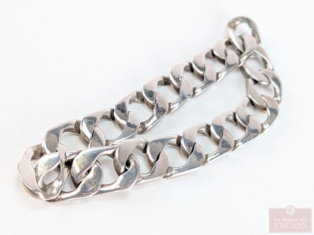 Lot # 62 - Bracelet en argent mailles cubaines 14mm, mesurant 9.5 pouces de longueur